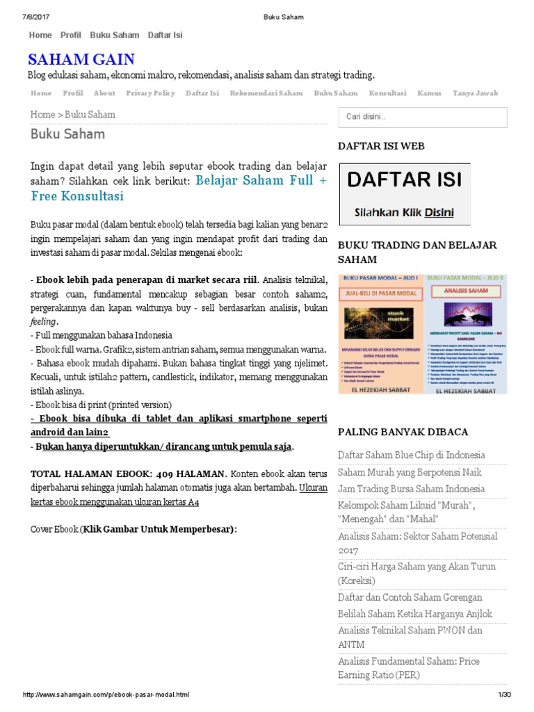 Belajar trading saham pdf. Belajar trading mulai dari nol sebagai seorang pemula memang tidak mudah. Ada banyak hal yang harus dipelajari. Kamu juga harus banyak berlatih untuk mengumpulkan pengalaman trading. Pastikan untuk konsisten belajar trading saham, forex, maupun instrumen yang lain sampai mahir. Download Ebook Belajar Forex Untuk Pemula PDF (15.00 MB) - SamPDF SamPDF ... Hai Guys, dalam video kali ini gua akan bahas 10 BUKU yang wajib kalian baca untuk menambah ilmu dalam trading saham atau forex, semoga bermanfaat dan enjoy! list buku : 1. Benjamin Graham , The inteligent investor 2. Mankiw, Principle of Panduan dan cara belajar trading saham untuk pemula. Tahapan yang perlu dilakukan untuk menjadi seorang pemilik saham di pasar modal sangat mudah. Terdapat 3 langkah utama yang harus dilaksanakan, yaitu: 1. Membuka rekening. Langkah awal yang harus Anda lakukan untuk memulai trading saham ialah memiliki rekening. 3 Kepentingan Untuk Belajar Saham 1) Menjana pendapatan sampingan. Oleh kerana kos sara hidup yang semakin meningkat setiap tahun, pendapatan sebulan hasil dari kerja mungkin tidak mencukupi untuk menampung perbelanjaan seharian, pembayaran bil, kos sewa rumah dan kereta yang mahal mungkin menjadi sebab utama anda mencari jalan untuk menjana pendapatan sampingan.