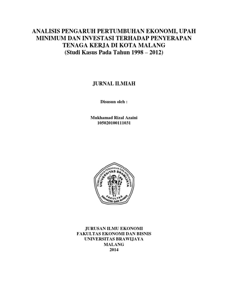 Jurnal Pengaruh Pertumbuhan Ekonomi Upah Minimum Dan Investasi Terhadap Penyerapan Tenaga Kerja Di Kota Malang Pdf