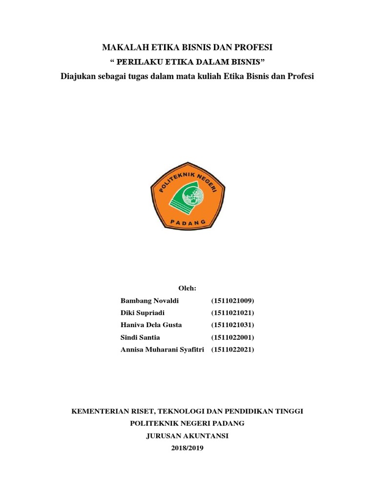 View Makalah Etika Bisnis -.pdf from MANAGEMENT 123 at Sriwijaya University. TUGAS ETIKA BISNIS Membangun Etika Bisnis dan Budaya Perusahaan Dosen Pengajar : DR. JONI EMERZON Disusun Oleh : Meni