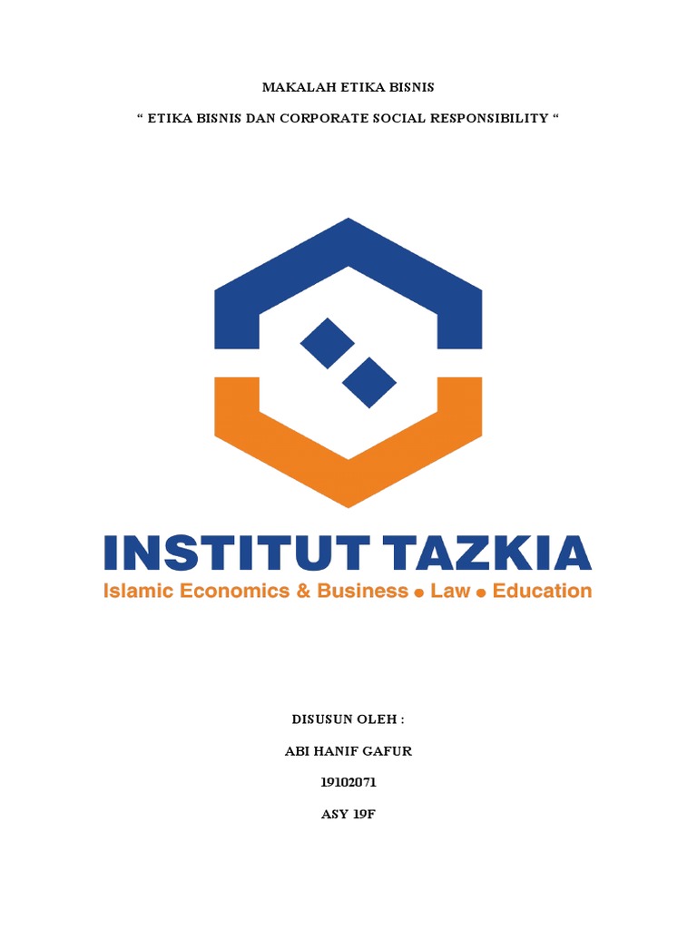 tentang Etika Bisnis dan Kewirausahaan sesuai dengan waktu yang telah ditentukan, guna. memenuhi tugas mata kuliah KWU. Dalam penyusunan makalah ini, banyak sekali pihak yang telah membantu. Untuk itu tidak lupa penyusun menyampaikan terima kasih kepada : 1. Ibu/Bapak dosen mata kuliah KWU yang telah memberikan pengarahan. Nama : Hanifah Rosyadi Dina Fahmi. NIM : 043386819 UPBJJ : Surakarta Mata Pelajaran : PKN. 1. Uraikan makna dari identitas nasional dan berikanlah contoh identitas nasional yang ada di Indonesia. Seperti hal nya pada manusia, yang mana setiap individunya memiliki identitas yang berbeda dengan individu lainya. Setiap Negara pun juga memiliki identitas nasional yang … Makalah etika bisnis 1. 0 MAKALAH TENTANG ETIKA BISNIS Oleh : ARMA 1210612012142 PROGRAM STUDI S1 MANAJEMEN SEKOLAH TINGGI ILMU EKONOMI SUMATERA BARAT PARIAMAN 2016 2. 1 BAB I PENDAHULUAN A. Latar Belakang Banyak faktor yang mempengaruhi dan menentukan kegiatan berbisnis. View Makalah-Etika-Bisnis-Islam.docx from CS W181700011 at Mercu Buana University. KONSEP ETIKA BISNIS ISLAMI MAKALAH Disusun oleh : Kelompok : 1(SATU) Nama / NIM : 1. Diddo Adding Adove 2. Magri