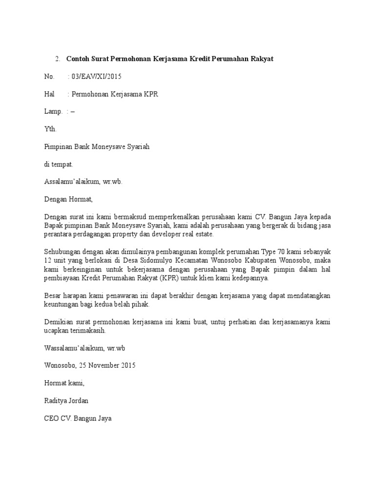 Contoh proposal pengajuan kredit usaha ke bank pdf