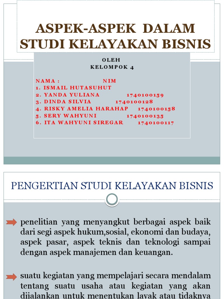 Oct 07, 2019 · Mengenal Aspek Manajemen dari Studi Kelayakan Bisnis. Pada studi kelayakan bisnis, terdapat beberapa aspek yang perlu ditinjau salah satunya adalah aspek manajemen. Bisa dikatakan jika aspek ini cukup penting sebab ide pengembangan bisnis akan digodok atau diupayakan menjadi kenyataan dibawah pimpinan dari tim manajemen. Berkaitan dengan study kelayakan bisnis “aspek manajemen” merupakan bagian yang tidak dapat terpisahkan dari beberapa aspek lainnya. Keberhasilan suatu bisnis yang telah di nyatakan feasible untuk di kembangkan sangatlah dipengaruhi oleh peranan manajemen dalam mencapai tujuan. Aspek Manajemen Dan Organisasi Studi Kelayakan Bisnis A. Pengertian Aspek Manajemen Aspek manajemen merupakan suatu aspek yang memperhatikan kaidah, tahapan atau fungsi dalam proses manajemen dalam mencapai tujuan yang hendak dicapai oleh suatu perusahaan atau organisasi. Fungsi–fungsi dalam manajemen yaitu meliputi perencanaan, pengorganisasian, pelaksanaan, dan pengawasan.