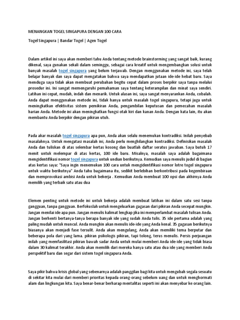 Togel Sebagai Investasi Yang Mudah Dan Menguntungkan ... Jadi sekarang apa pendapat Anda tentang togel singapura? jika cara bermainnya menggunakan trik Paket Berlangganan Investasi Togel apakah dengan bermain togel yang menghasikan Rp 6.027.000 (45LN) s.d Rp 18.081.000 (15LN) per minggu bisa menjadikan Anda MISKIN? keputusan ada pada Anda tentunya jangan memandang togel sebagai ajang judi namun ... Teknik main togel menang tiap hari | Manufacturing Food Cara teknik investasi main togel menang tiap hari di atas telah banyak digunakan oleh para pemain ahli, dan mereka banyak yang memperoleh kemenangan. Kelebihan dari teknik investasi di atas, adalah Anda memasang pada banyak angka sekaligus. Artinya peluang kemenangan anda akan lebih besar dibandingkan dengan hanya memasang pada satu atau dua ... Cara Bermain Judi Togel Online Dan Rumus Togel - Absbet.info 3 Cara Menang Judi Togel Dan Rumus Togel . Jadi di sini kami akan memberikan cara yang sangat mudah dan jelas , bagaimana cara memenangkan judi togel online. Apabila anda membaca dengan teliti panduan ini pasti anda akan berhasil / menang dengan cara mengikuti panduan yang akan kami bahas di bawah ini. Tips Rahasia Cara Mencari Rumus Angka Togel Melalui permainan togel kamu bisa mendapatkan keuntungan yang sangat banyak. Agar dapat memperoleh keuntungan besar dari beberapa pasaran di atas, kami akan mulai menjelaskan cara bermain togel on-line dengan baik dan benar untuk pemula yang ingin mencari peruntungan dari permainan tebak angka satu inre.