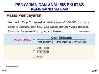Penyajian Dan Analisis Ekuitas Pemegang Saham - Penyajian ... PENYAJIAN DAN ANALISIS EKUITAS PEMEGANG SAHAM Penyajian Berikut ini merupakan contoh kelompok ekuitas pemegang saham komprehensif yang diambil dari neraca Frost Company yang meliputi sebagian besar pos-pos ekuitas. FROST CORPORATION Ekuitas Pemegang Saham 31 Desember 2007 Modal Saham Saham preferen, nilai pari $100, kumulatif 7%, diotorisasi 100.000 lembar, diterbitkan dan beredar 30.000 ...