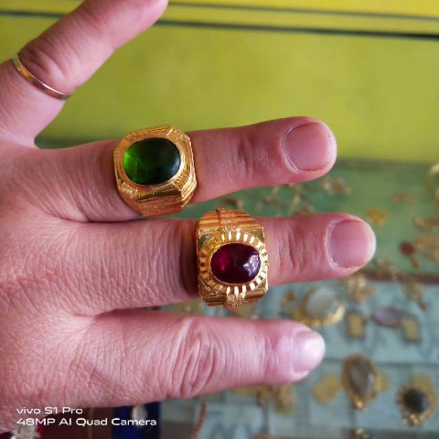 Promo CL986F215F cincin emas pria model eropa permata batu hijau antik asli di Paris Gold Jewelry | Tokopedia